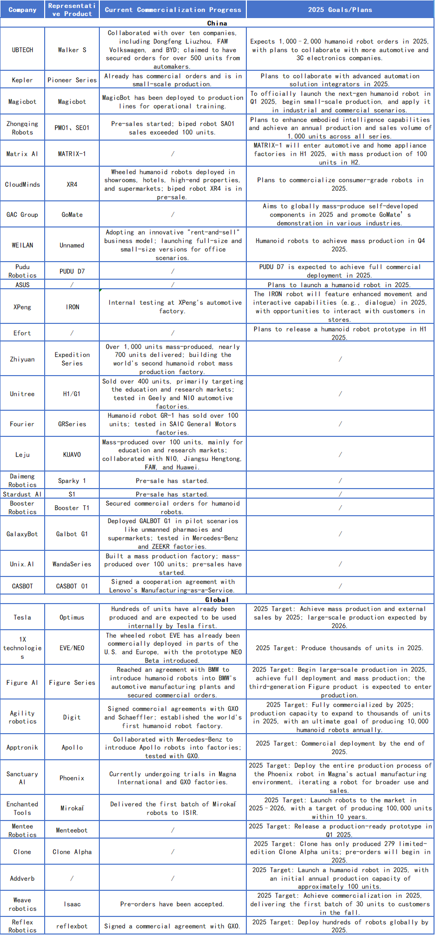 In terms of commercialization, several manufacturers have announced plans to achieve mass production or release nextgeneration humanoid robots in 2025, with comprehensive market strategies to follow.