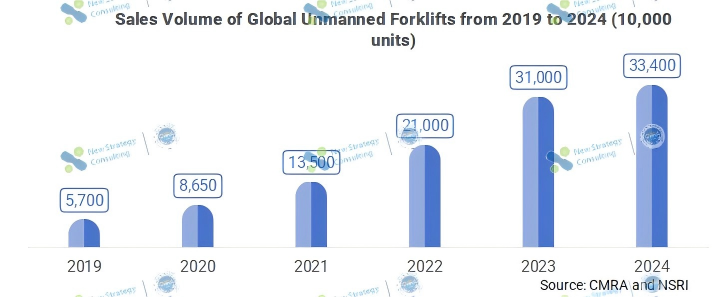 According to the data from China Mobile Robot (AGV/AMR) Industry Alliance (CMRA) and the statistics of New Strategy Mobile Robot Industry Research Institute (NSRI), approximate 33,400 unmanned forklifts were sold globally in 2024, representing 14.65% of the overall market. The unmanned forklift market has been booming in recent years, with a growing number of applications and companies launching more new products than any other type of mobile robot.