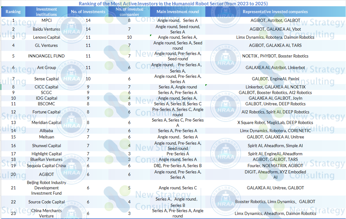 A total of 23 investment institutions were included in the ranking. The ranking itself shows that a group of highly stable “long-term investors” has emerged in the humanoid robot sector.