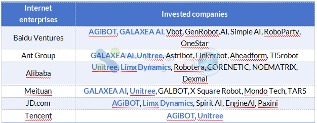 The List of Humanoid Robot Companies Invested by Internet Companies over the Past Three Years