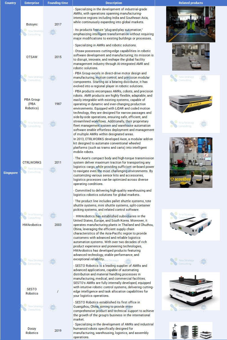 While Singapore’s domestic mobile robotics enterprises may not be numerous, they demonstrate remarkable technological density, spanning multiple core sectors including AMRs, AGVs, unmanned forklifts, and composite robots.