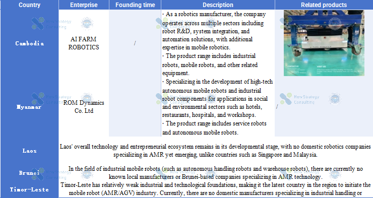 In countries such as Cambodia, Myanmar, Laos, Brunei, and East Timor, the mobile robotics industry remains in its infancy or even non-existent. Domestic enterprises lack large-scale production capabilities, with automation projects predominantly undertaken by external system integrators. Due to limited industrialization levels in some nations, mobile robotics has yet to integrate into mainstream manufacturing and warehousing systems. The relatively small market size makes it challenging to establish an independent industrial ecosystem in the short term.