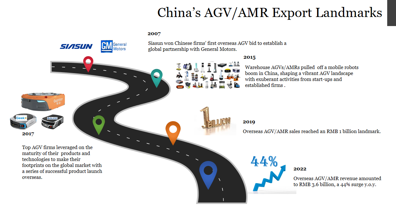 China’s AGB/AMR export remained strong in 2023 with an anticipated growth rate of 25% year-on-year to a total of RMB 4.5 billion, according to New Strategy Institute of Mobile Robotics Research.