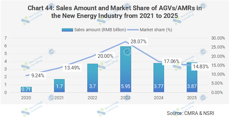 The boom from 2020 to 2023 was driven by the expansion of new energy production capacity, which brought industry benefits and made new energy the leading market segment in the AGV/AMR sector;
