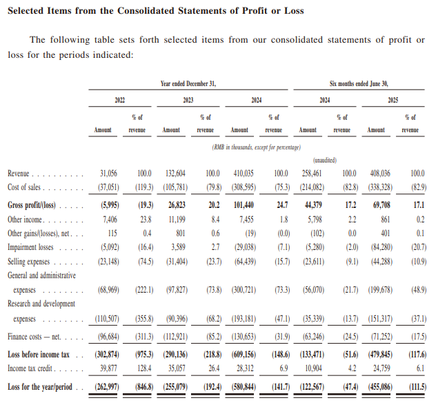 The prospectus shows that CiDi’s revenues for 2022, 2023, and 2024 were 31 million yuan, 133 million yuan, and 410 million yuan respectively, with a compound annual growth rate of 263.1%.