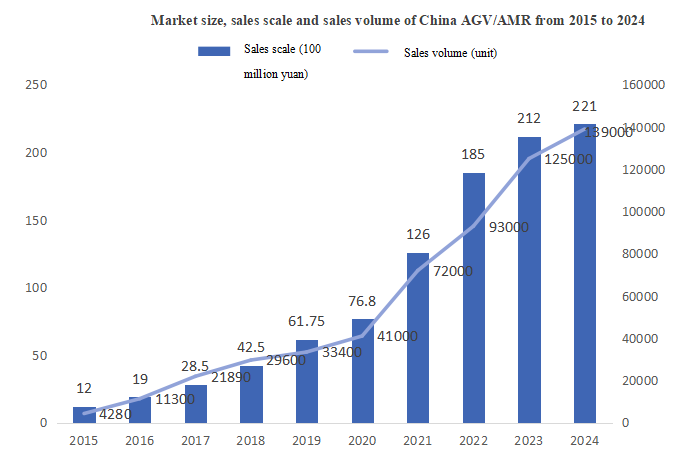 Chart: Sales scale and sales volume of China’s mobile robots from 2015 to 2024