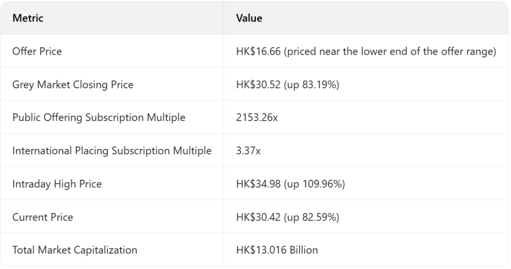 The offering drew extraordinary investor demand, underscoring broad optimism in the company’s long-term trajectory: the public offering segment was oversubscribed by a remarkable 2,153.26 times, while the institutional offering was oversubscribed 3.37 times. The listing was jointly sponsored by Guotai Junan International and CITIC Securities.