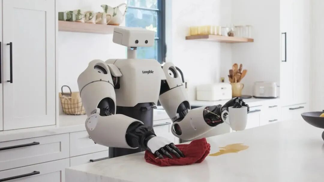 On November 18, Tangible Robots, a US-based humanoid robot startup, launched its new home humanoid robot, Eggie. Its three pillars are dexterity, compliance, and full-body control. It features five-fingered bionic hands and a wheeled mobility design, enabling complex human-robot interaction and precise manipulation in daily life scenarios. The demonstration video highlighted tasks such as cleaning up spilled drinks and removing lint from clothes. The hardware and software of the machine were independently developed by the team, emphasizing a lightweight, manufacturable, and scalable intelligent system design.