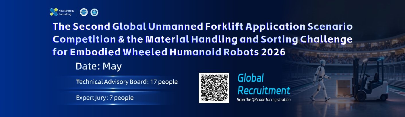 The Second Global Unmanned Forklift Application Scenario Competition & the Material Handling and Sorting Challenge for Embodied Wheeled Humanoid Robots 2026 will be held by CMRA in May. Building upon the unmanned forklift competition, a wheeled humanoid robot track will be introduced for the first time, responding to the industry’s real-world needs for embodied intelligent application scenarios and further building a bridge connecting technological innovation and industrial applications.