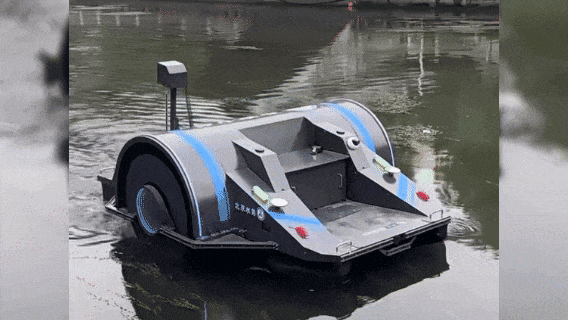 This unmanned vessel features a wave-piercing design to improve its seakeeping and wind resistance. It uses a paddle-wheel propulsion system with dynamic fins for lightweight and efficient operation. It is equipped with an intelligent laser bird-repellent device that automatically identifies and repels birds within a 20-meter range.