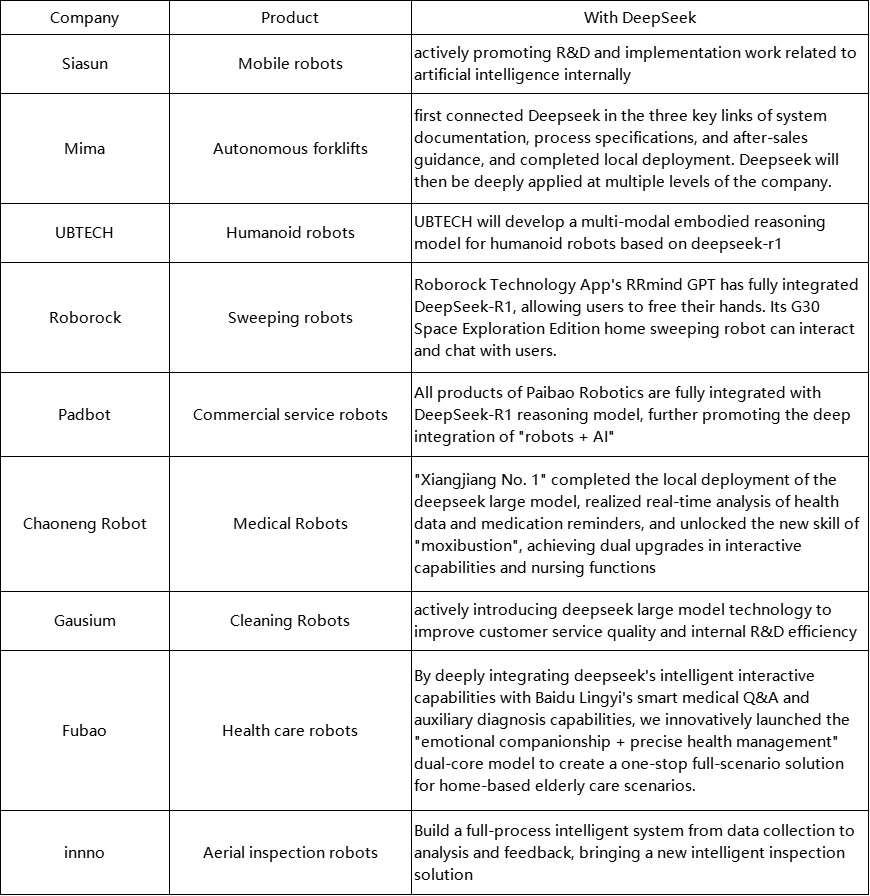 Partial List of Robotics Companies Integrating DeepSeek (Incomplete Statistics by New Strategy Mobile Robot Media)
